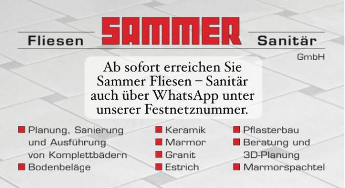 Die Firma SAMMER Fliesen - Sanitär GmbH steht mit Ihrem Namen für höchste Qualität und garantiert erfolgreiche Ergebnisse.